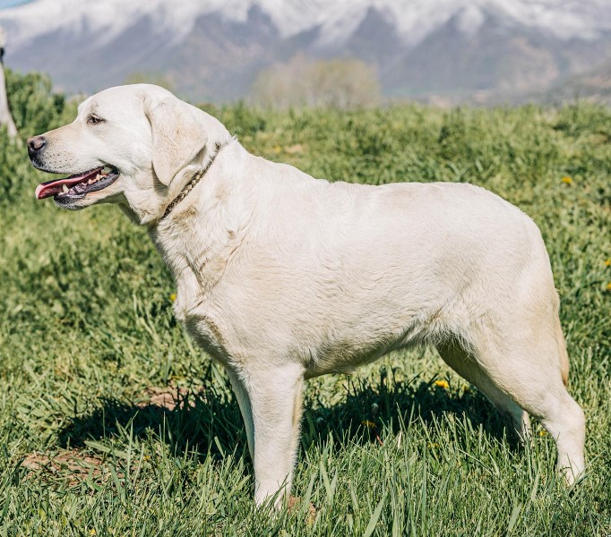 Dam:  “Kiki” is well built, thick, smart, and light cream in color.  Kiki dad is North Star Diamond Briggs, our stunning, cream big boy.  Kiki’s gorgeous mother, Mountain Diamond Challis, is sired by CH Lab’SPB Yu-Piter, more famously know by his call name, “Bourbon”, an International Champion.