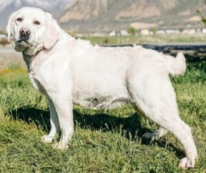 “Ash of Diamonds” call name “Ash”, is a beautiful daughter of the famous International Champion LAB’SPB YU-PITER Uk GCH CH JCH, Md GCH CH JCH, Cz, Lt, Ru CH, more famously know by his call name, “Bourbon” originally from Russia, and mother, Rush On In Diamond Oakley, call name “Oakley”. Ash is a gorgeous white female weighing 75 lbs. with a nice English build; handsome head, robust body, and a thick otter tail. Ash has a delightsome disposition, and loves being with people, and other dogs.