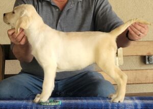 1. Kimo, DOB: 7/26/16 – My has time flown. It’s so sad that our Kimo is retiring from our breeding program. As you can see from his picture, Kimo is such a gorgeous dog with stunning English features and a light cream colored coat. He loves people, gets along with other dogs and has a super personality. Kimo was professionally trained and has Junior Hunter points. Beside game birds and water fowl, Kimo loves to retrieves balls, sticks, and other objects. He will make an awesome companion for any family especially one that likes to hunt. He loves to please and participate in family activity. One of our past family friends who had adopted one of our Lab Retrievers, created a game that their dog loved playing “Hit, Fetch and Return the Baseballs”. What a creative and fun way to get dog, Dad, teenage sons and daughters out of the house to have fun and get some exercise and practice. Other families have taken their dogs swimming. I bet you could also think of other creative ways to enjoy your dogs, especially one that loves retrieving or going on walks or jogs.