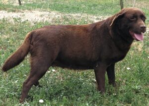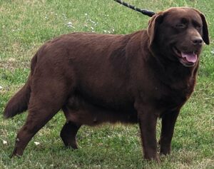 Sire: “Tango”: We couldn’t wish for anything more. Tango has matured, blossoming into a stunningly handsome chocolate English Lab. Tango is royally bred, a son of CH Cedarwood Signatures Otter By Design. Tango’s mothers, Gold Rush Luck of The River, is a grand daughter of GCH CH High Caliber Labradale Expresso and GCH CH Sheabornes Grizzly Adams. Tango has a wide forehead, a long attractive neck, muscular stout body, and a thick otter tail, typical of the Labrador Retriever breed. He has a great personality and loves to retrieve. Tango passes on many of his fine traits/genes to his offspring. We are so excited to have him!!!