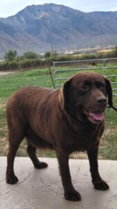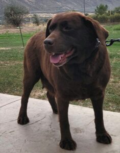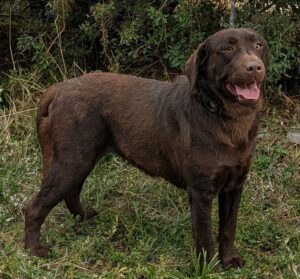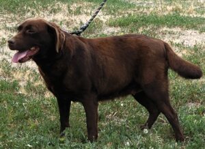2. “Maya” (littermate sister of Stitch), has been retired from our breeding program, my how time quickly passes when you’re having fun. Maya and Stitch has been the backbone of our chocolates. Maya is a beautiful chocolate daughter of GCH, CH Simerdowns Spin Doctor and our own lovely Hawaiian Pride’s My Tita. Maya is gorgeous, healthy and has a lovely personality and loves to retrieve balls, sticks and other objects. She gets along with her family of dogs. She weighs approximately 65 lbs.